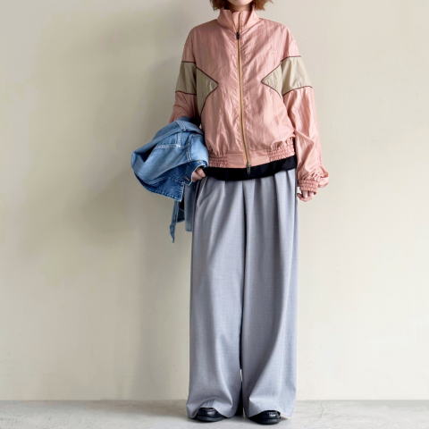 ・ワッシャー加工を施したナイロン100%を使用し、80’sムード漂うナイロン特有の鈍い光沢感がマイルドな輝きを放ち、スポーティかつ軽快な印象に。