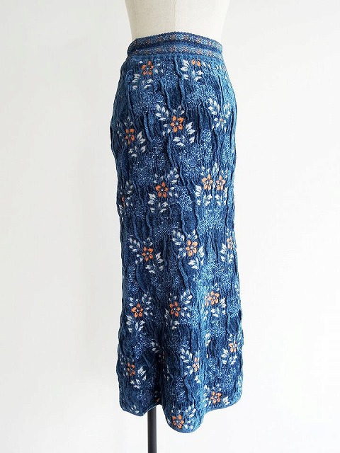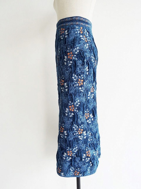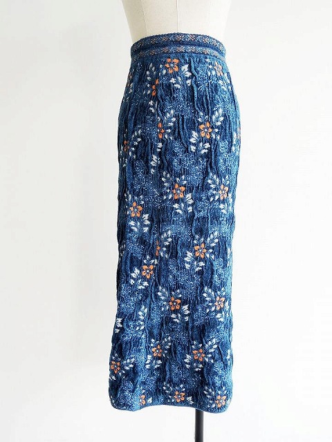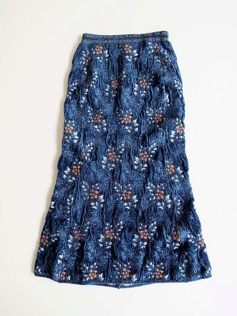 ・リブ部分に小花柄をあしらったノスタルジックで表情豊かな配色のニットスカートは、しっかりとした肉感とウエストゴム仕様によりリラックスムードを叶える1着。