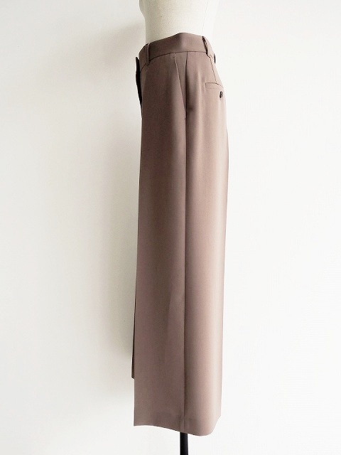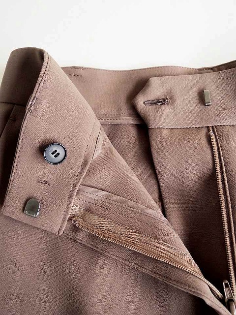 ・広がりすぎないセミワイドシルエットが動くたびに揺れ、女性らしいエレガントさを際立たせてくれる一着。ウエスト位置を高くマークすることで脚長効果も期待できます。