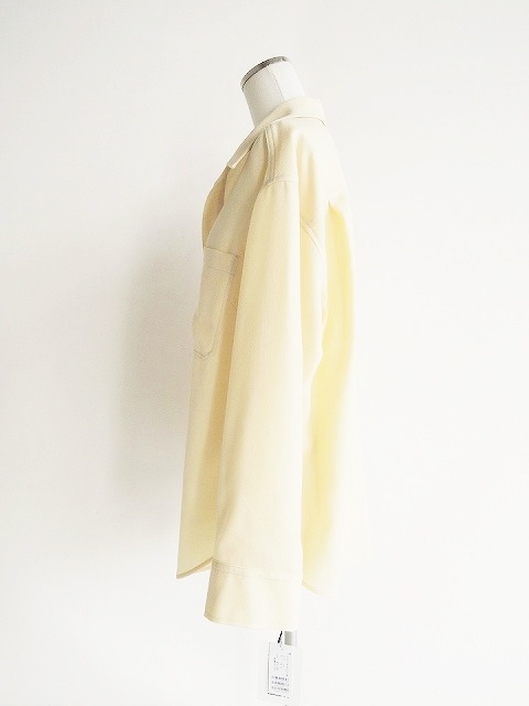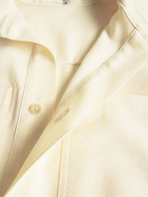 ・ステッチを効かせたパッチポケットがクールな印象の中にもスキッパー開きで首元に抜け感をプラスし、女性らしい仕上がりに。