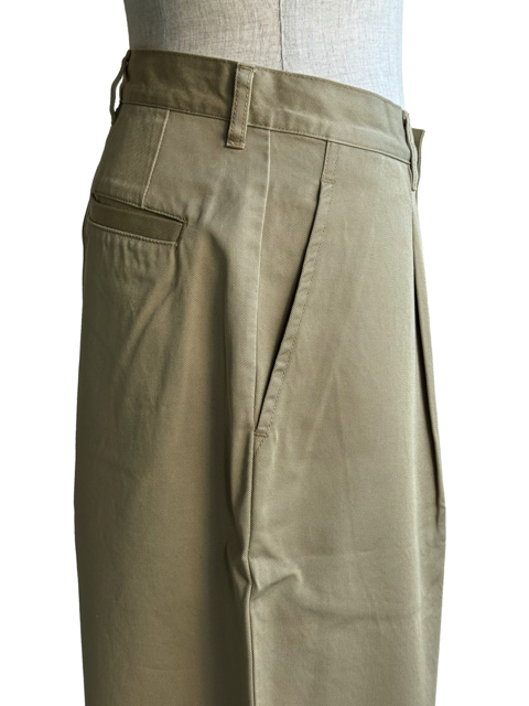 フロントにワンタックが入り、腰回りは程よくゆとりがあり