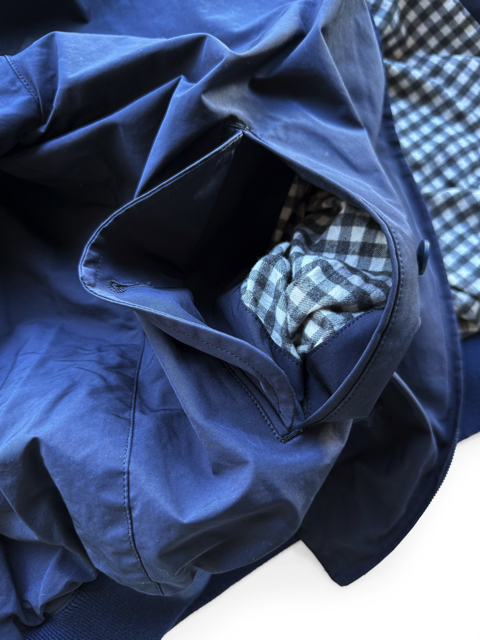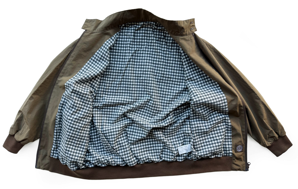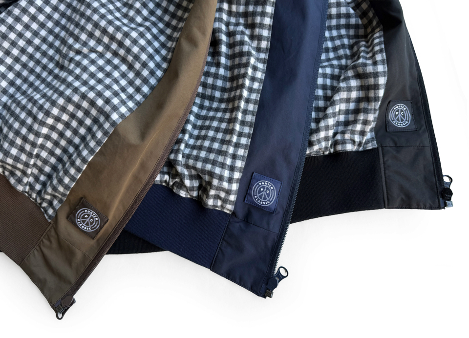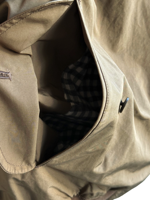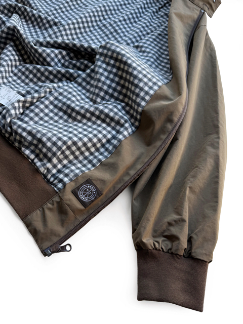 表地は水が躍る撥水。裏地はギンガムチェックで切替仕様になります。