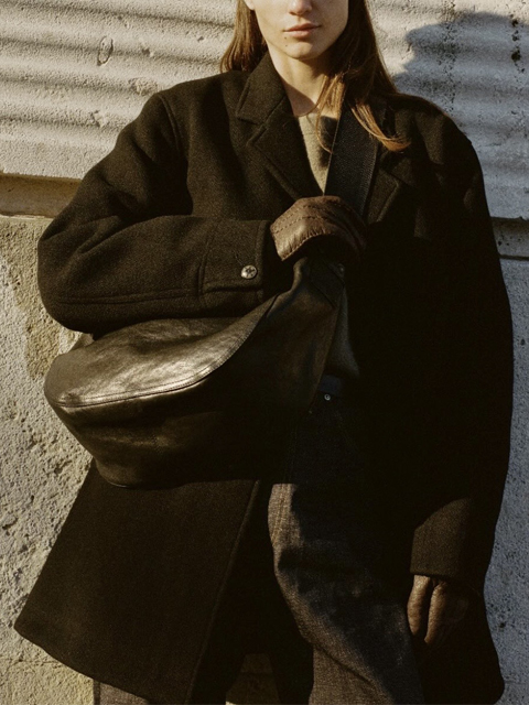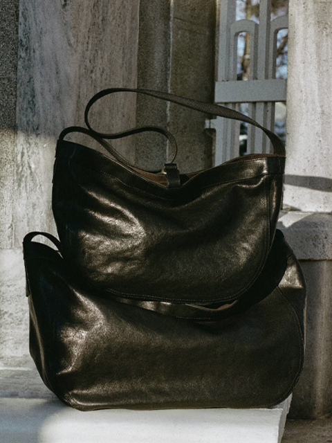 ショルダーハンドルのステッチを敢えてランダムな間隔で入れ、