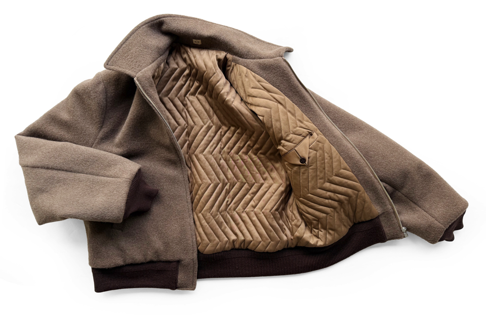 希少なヤクの毛を使用した二重織生地を使用し、ヤク本来のナチュラルな色合いを生かしている。