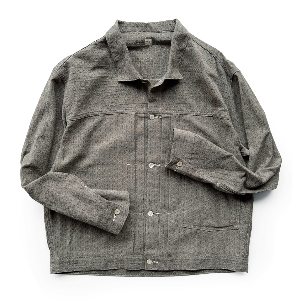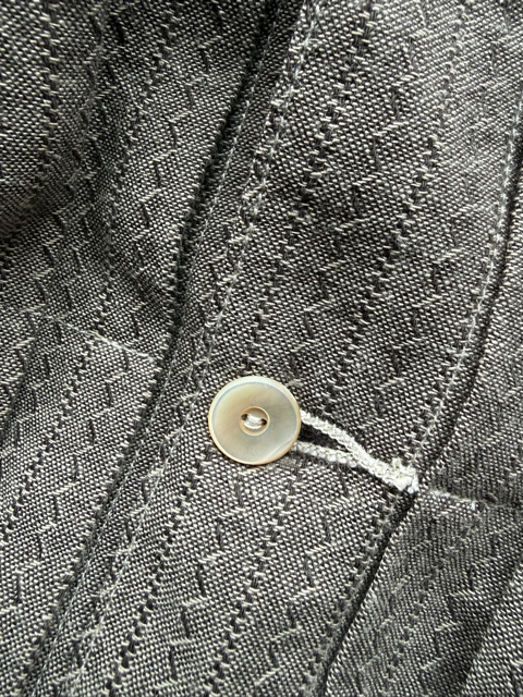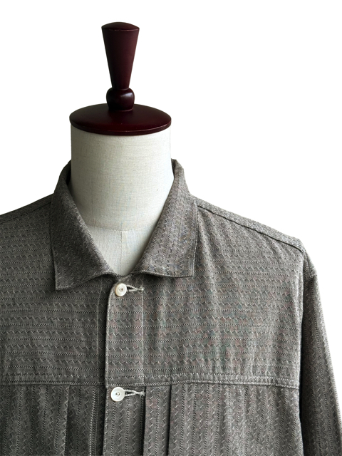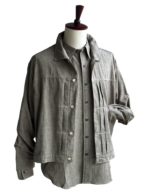 貝ボタンを用いてシャツとしても着られるようにデザインしたジャケットである。