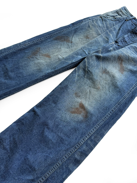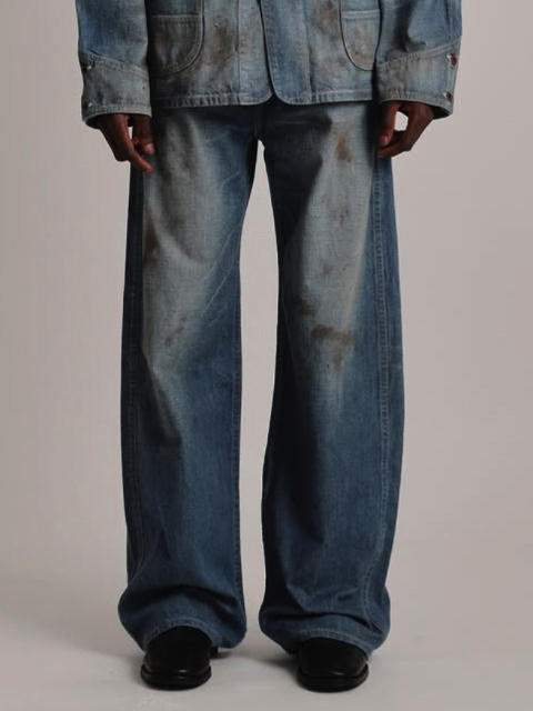 ワークウェア特有の土汚れ、オイル汚れも踏襲しリアルなダメージ加工に仕上げた。