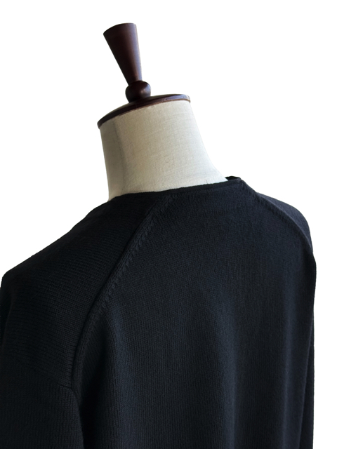 カーディガンも3本撚りですがプルオーバーよりもゲージを詰めて編んでいます。