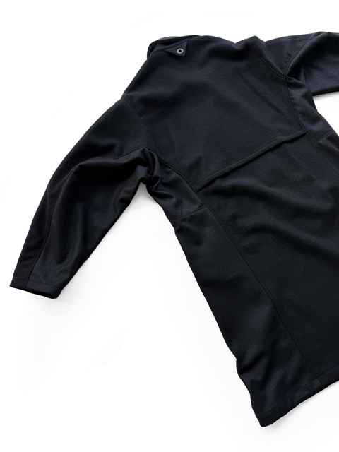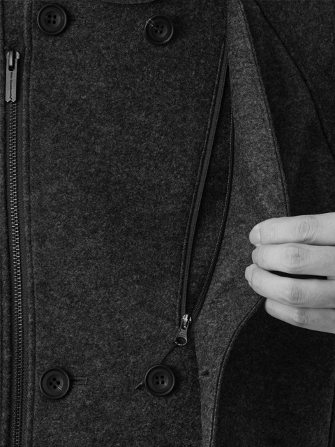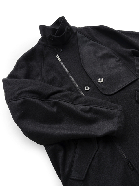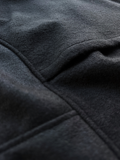 圧縮をかけ、独特な表情に仕上げたウールリング素材を使用しています。