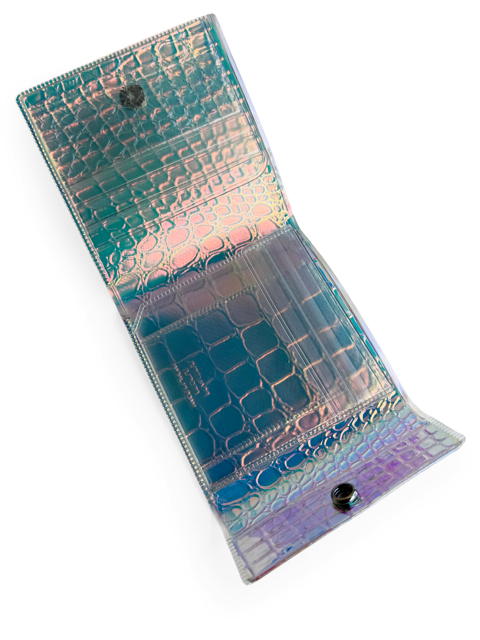 ・クロコダイルとシュリンクレザーの表面感をオーロラシートにエンボス加工