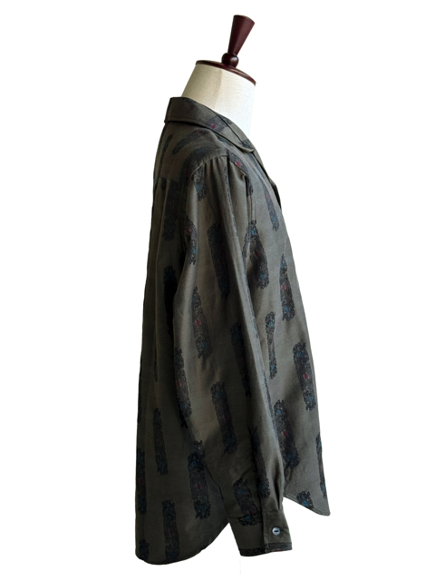 独特の襟型に涼し気な首周りのデザインがユニークな開襟シャツ。
