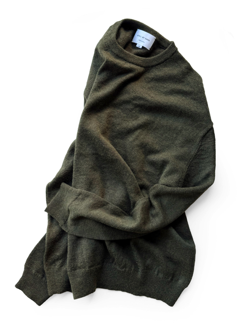 12ゲージで編んだクルーネックプルオーバー。