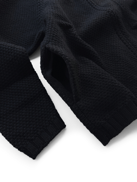 凹凸感のある編み地のショートブルゾンで胸ポケットに