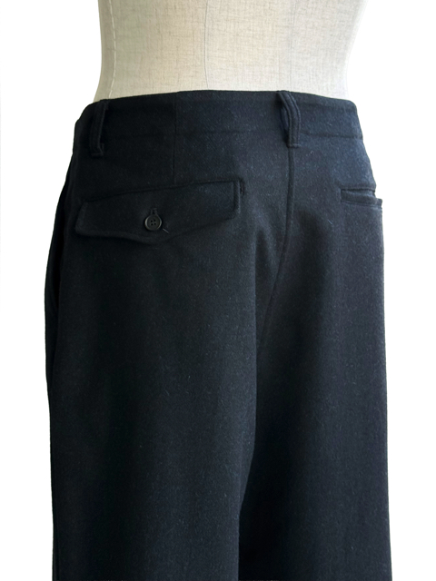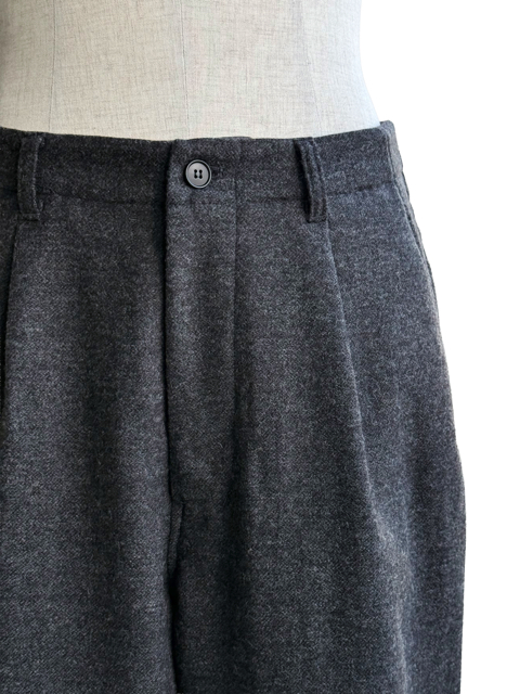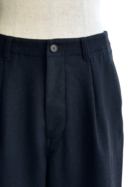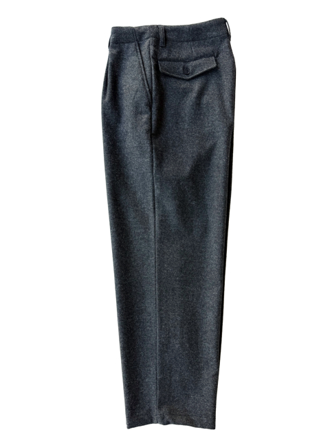 シルエットはワイドでテーパードを緩やかにし、ストンとしたラインとなります。