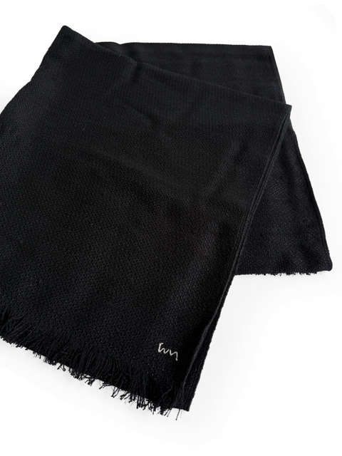 柞蚕大條糸で織り上げたツイード生地を使用したストール。