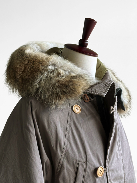 特殊な加工を施した綿とナイロンを使用したダウンコート