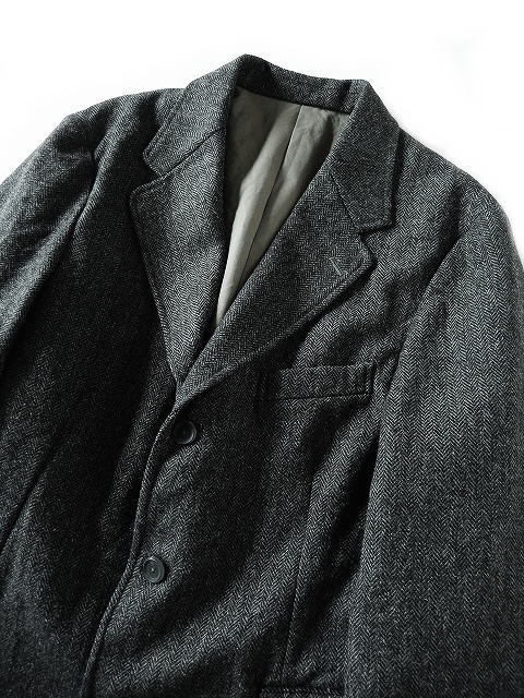 ドロップ寸が少なく、肩回りの内臓物も薄めにし、アウター感覚で着用できる様に設計したテーラードジャケット。