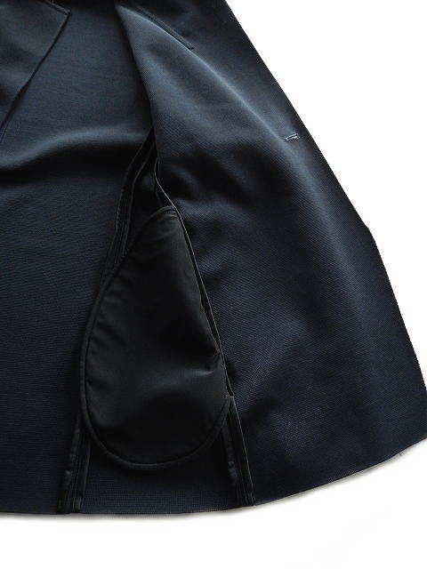 ディテールや切り替え、ステッチを最小限に抑え、高めの位置に設定された一つボタンが、ソリッドでミニマルなデザインです。