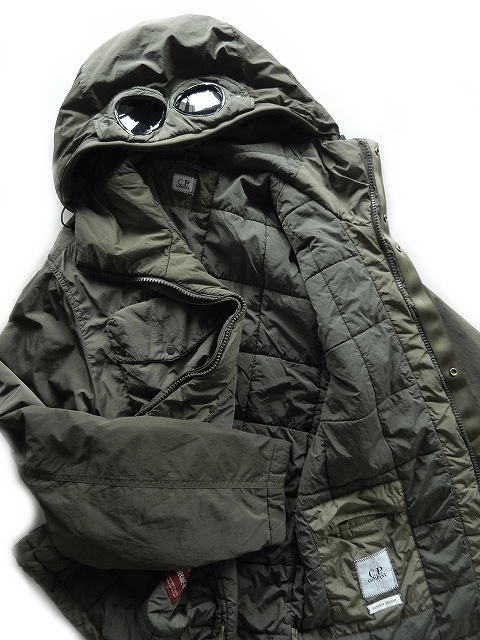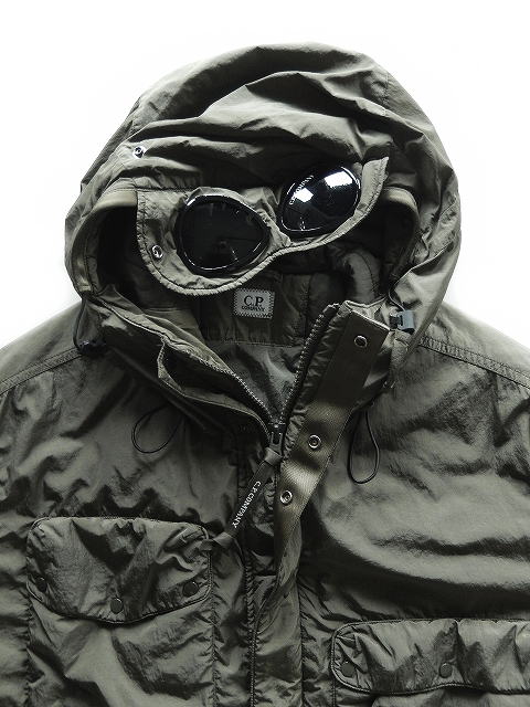 ジャケットの特徴は、C.P. Companyの象徴的なゴーグルフード、フラップ付きスナップ留め付きの隠し両面フルジップ、