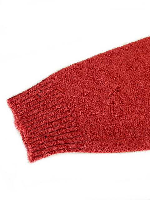 シェットランドウールを使用したダメージライクプルオーバーニット。