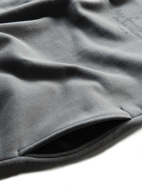 フィット感を高めるリブを裾と袖口に配し、フロントにあしらったロゴグラフィックがアクセントになった一着。
