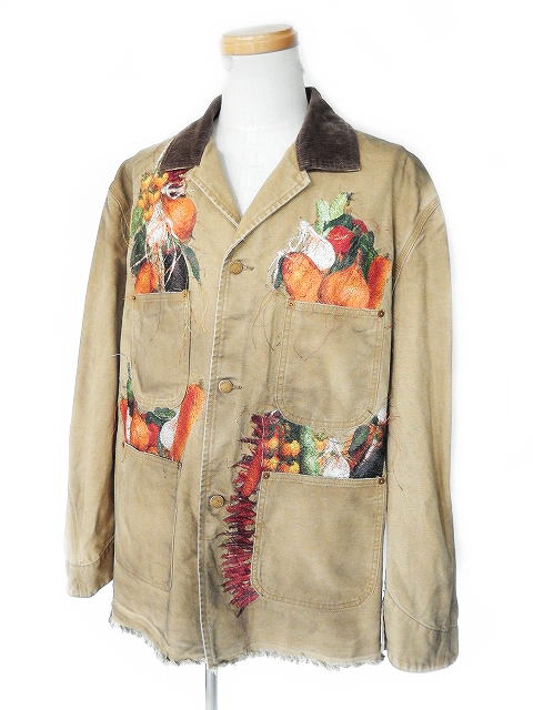 などの野菜をリアルな刺繍で施したワークジャケット。