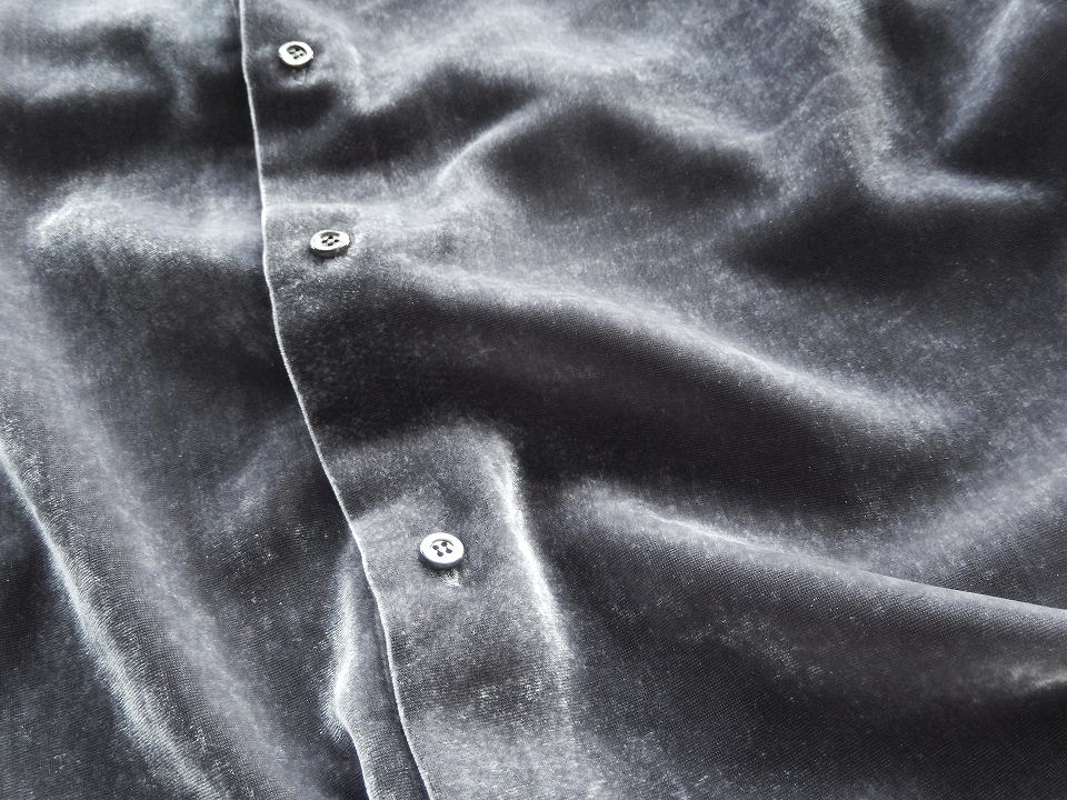 シャンブレー感のある色合いが特徴のベルベット素材のシャツ。