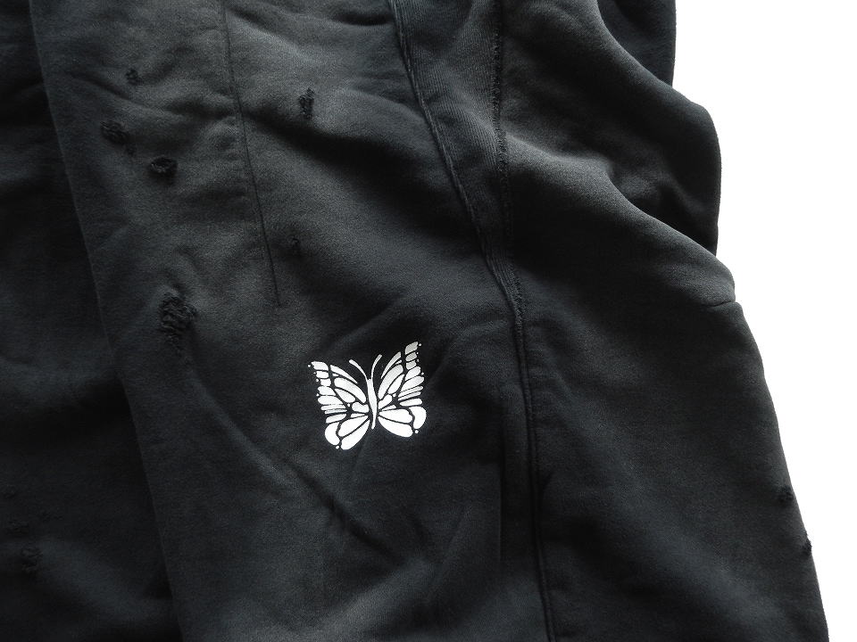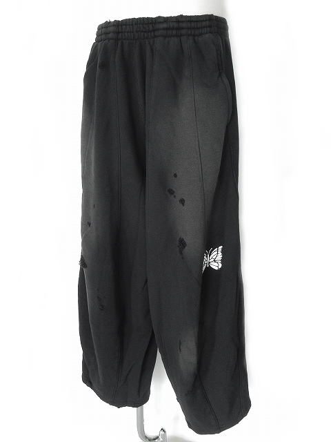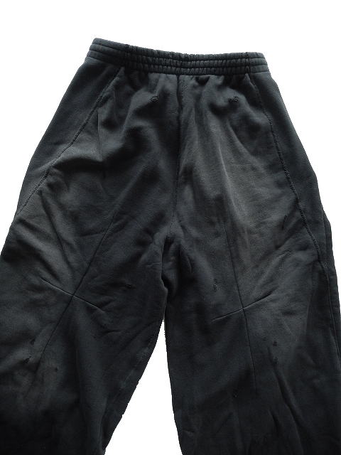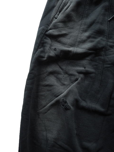 ヴィンテージスウェットのようなリアルなダメージや色褪せの加工が施されたスウェットパンツを