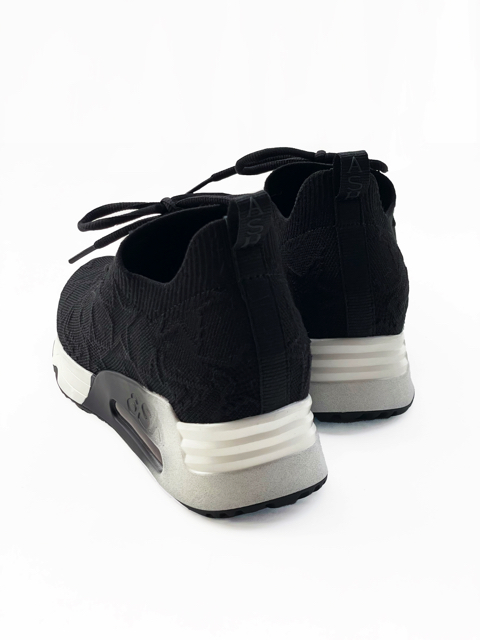・アッパー全体がニット素材でスリッポンのようにワンタッチで着脱していただけます。且つ甲にはシューレースも付き、甲が低い方も足に合わせて調整していただけます。