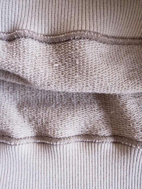 ・ブランド定番のストライプ裏毛は通常の裏毛では表側に単糸を使用するのに対し、こちらは表糸を双糸(30番手双糸)で編立てをしている為、キメ細かく、強度の高い表面感となっています。