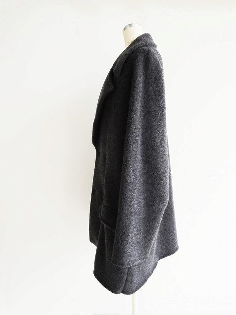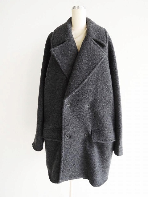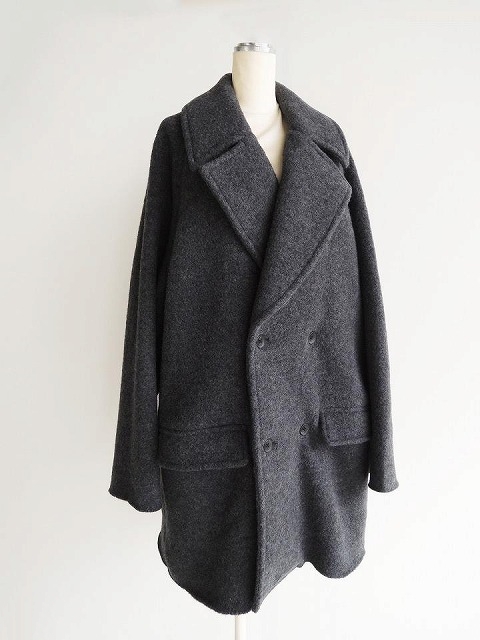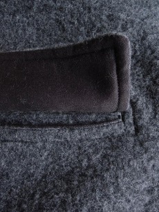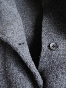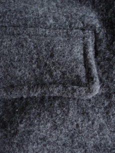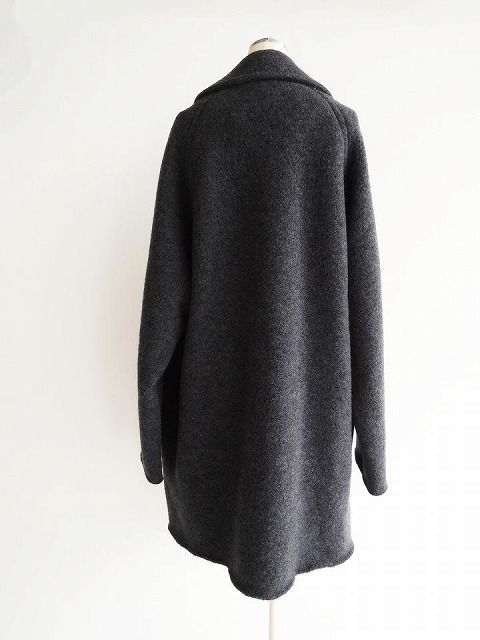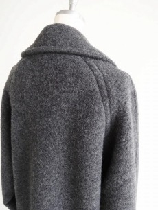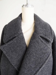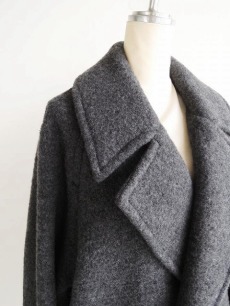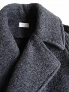 ダブルフェイスメルトン並のボリューム感ながら重量は3分の1程度の約300g/mほどで着用した時の軽さも実現したコート。