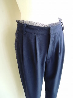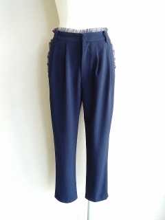 ・タックを入れることでお腹周りをきれいに見せてくれるのも特徴です♪ポケット部分にさりげなくフリルをあしらい、甘さをプラス。 |