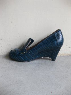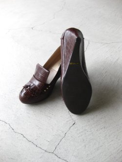 ・レザーのマットでつややかな光沢にクロコ型押しデザインが大人なローファーパンプス。