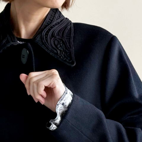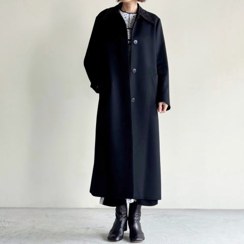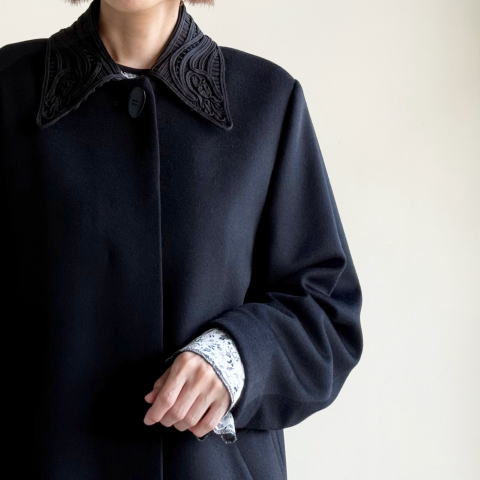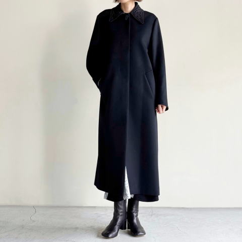 ・商品名: Wool Melton Embroidery Collar Long Coat
