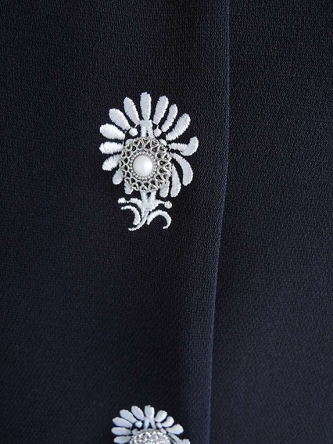・細やかな装飾があしらわれたパールボタンの周囲には、まるで花が咲いたかのような刺繍が添えられている。