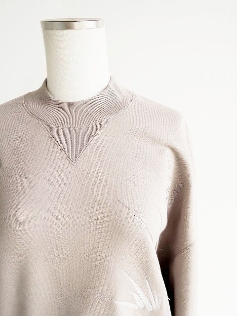 ・可憐な草花の刺繍を大胆に施したジャージートップはハリ感のあるしっかりとした生地にシルケット加工を施し、光沢感のある上品な仕上がりに。