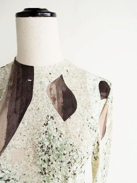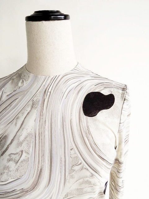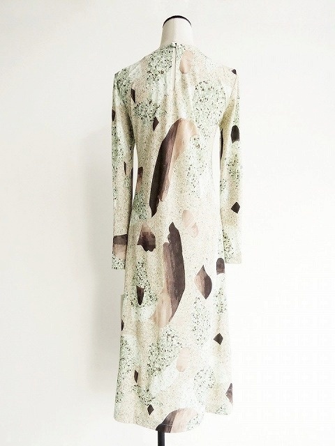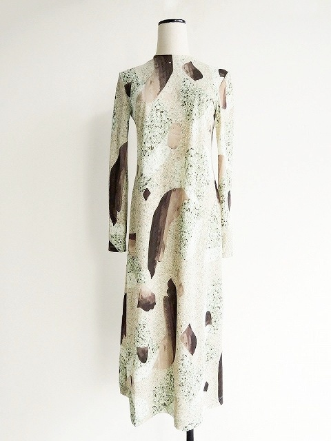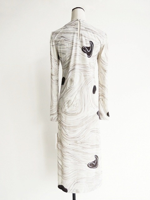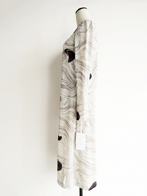 ・長野で出会った地層模様の石のテクスチャーや断面の景色をブランドオリジナル柄として表現したジャージードレス。