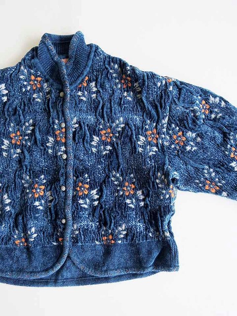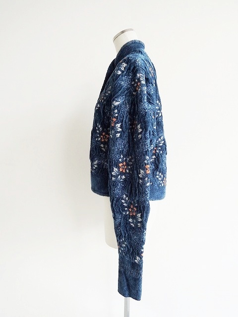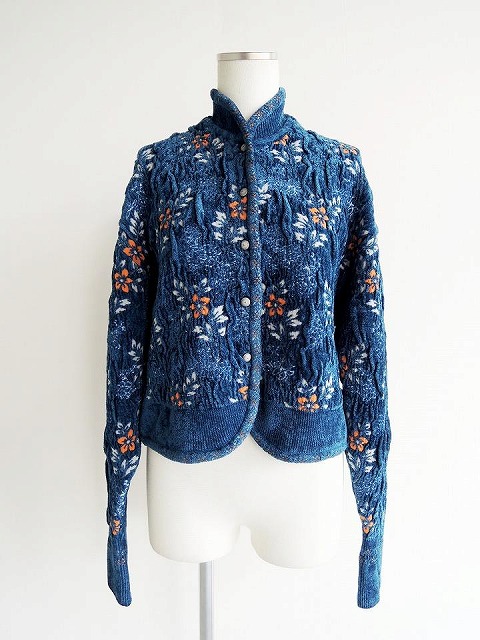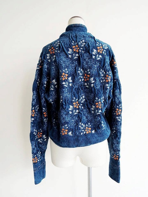 ・パイピングやリブ部分に小花柄をあしらったノスタルジックで表情豊かな配色に加え、しっかりとした肉感とネックラインに綺麗に沿うデザインはライトなブルゾンのような着用感を実現。・ショート丈とアールのついた裾のカッティングにより様々なスタイルに取り入れやすい1着。 |