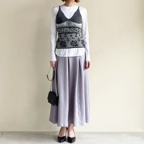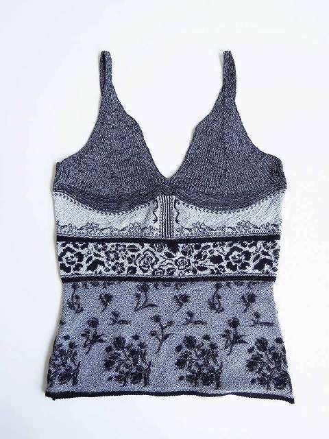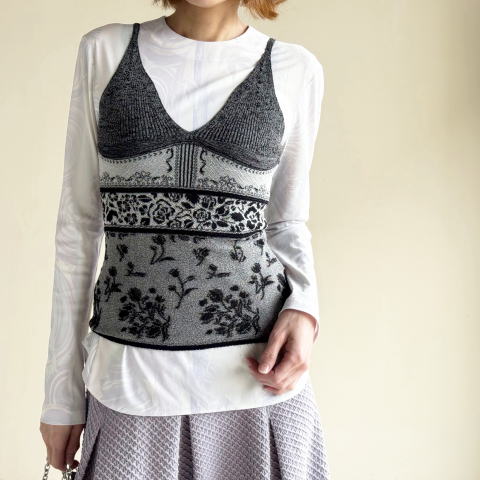・マットな質感と大胆な花柄が印象的なキャミソールトップ。