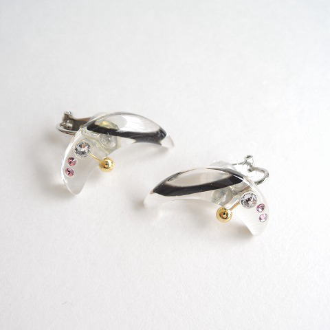 三日月モチーフは、樹脂とクリスタルと小さなゴールドのパーツで、1ピース1ピース丁寧に作られています。