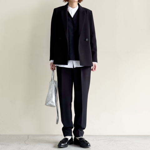 ・ヒップにかかるやや長めの着丈でマニッシュなバランスに。きちんと感がありつつもほど良くリラックス感があり、カーディガン感覚でさらりと着用いただけます。