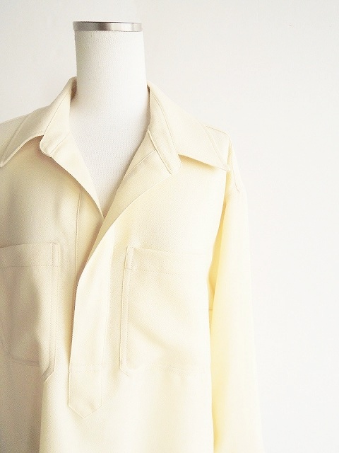 ・ステッチを効かせたパッチポケットがクールな印象の中にもスキッパー開きで首元に抜け感をプラスし、女性らしい仕上がりに。
