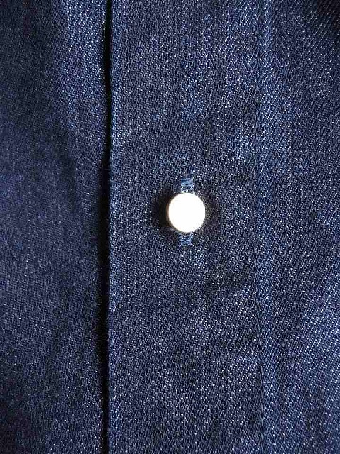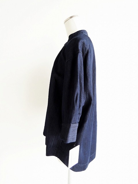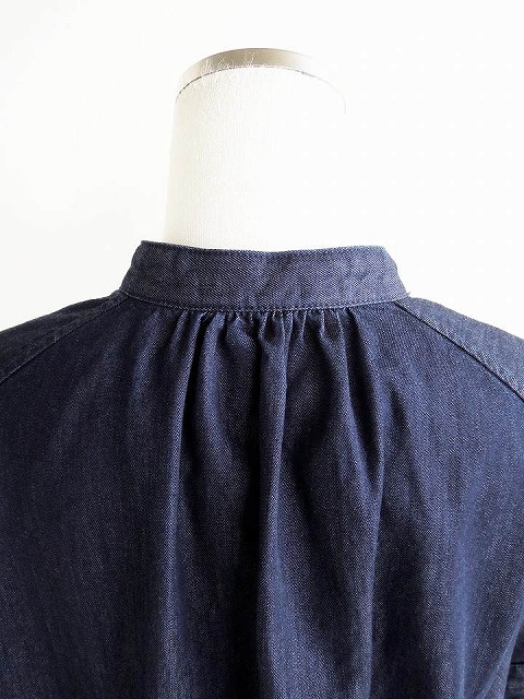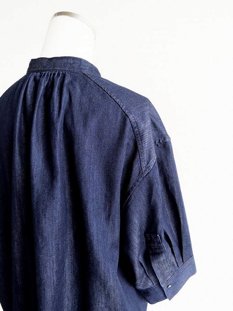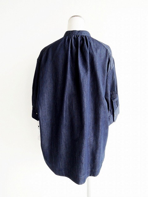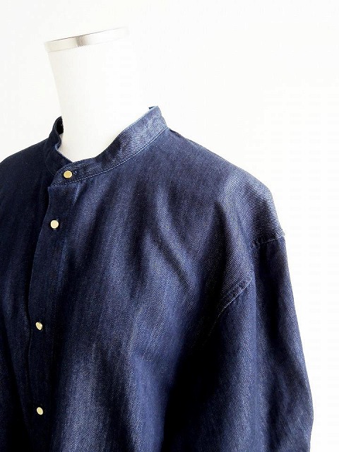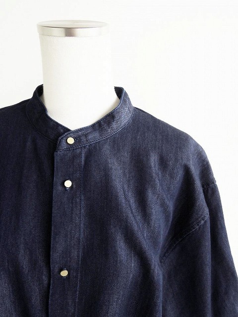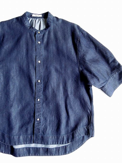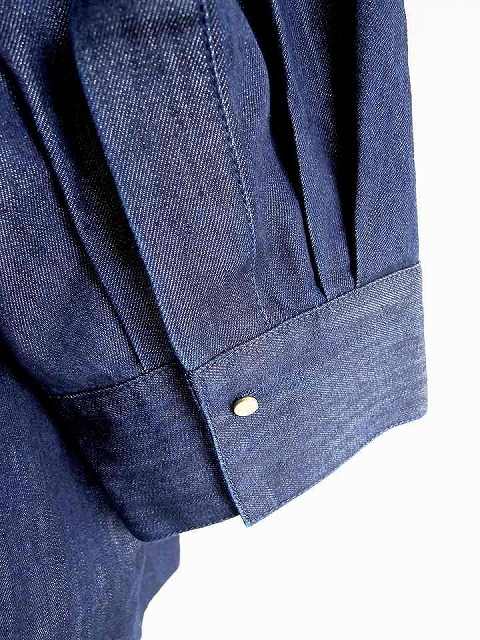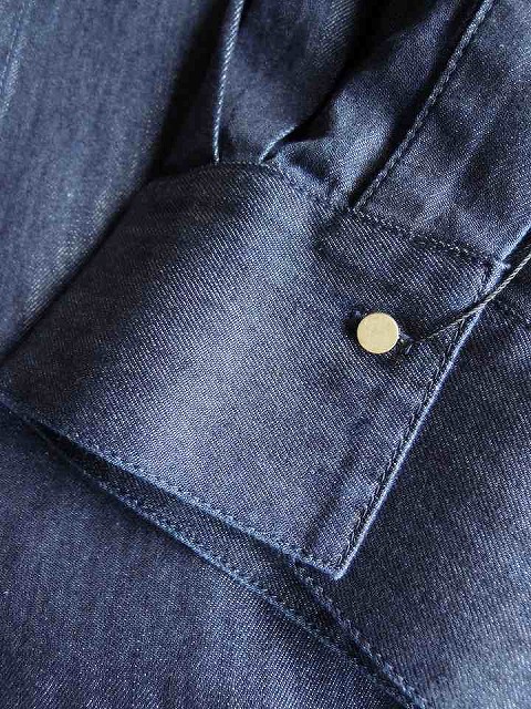 ・コットンコンパクトヤーンとセルロースを使用した薄手のデニムシャツは、再生繊維を織り込むことでドレープ感と光沢が表現されたライトな肌さわりが特徴です。