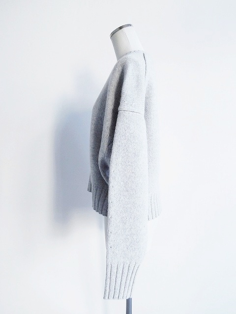 ・ブランド定番のニットシリーズはラムズウールのふっくらとした風合いをより一層お楽しみいただけるよう、糸の原料や紡績、撚糸、染色にこだわり一からオリジナルで作り上げています。・コンパクトなボディと存在感のあるふんわりとしたスリーブの組み合わせが新鮮なバランスの一着。