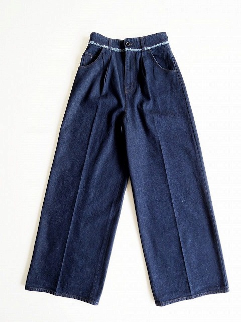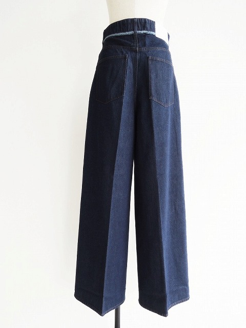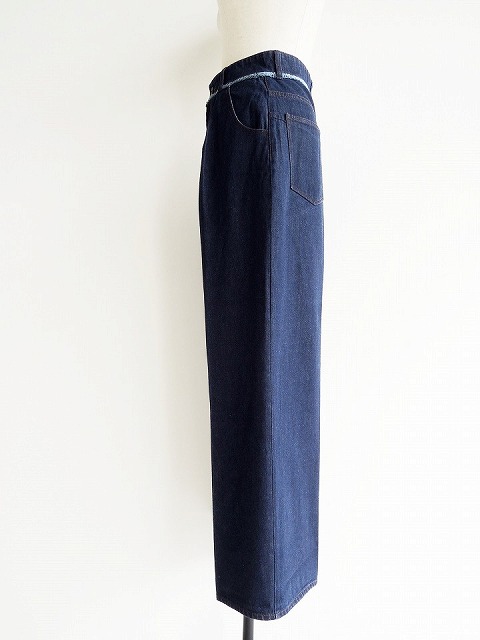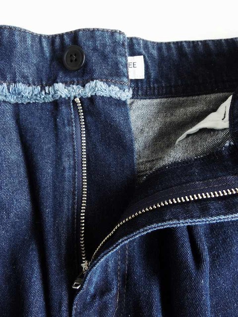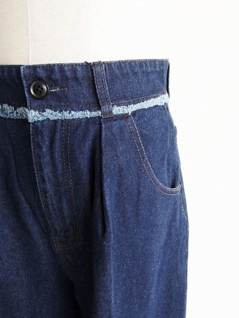・デニムのディテールとスラックスの両方の良さを活かしたデザインでカジュアル過ぎない印象に。