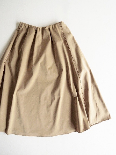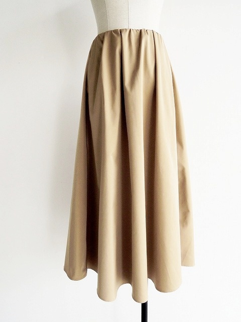 ・微起毛感を感じるソフトな風合いながら弾力とハリ感をプラスしたダブルサテン素材のスカート。