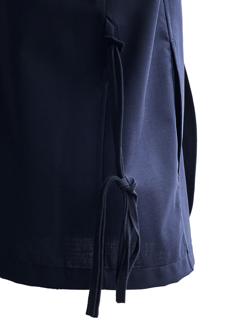 ダブルブレストの構造で吊りベルトがデザインアクセントになっております。