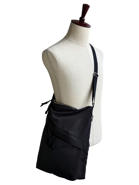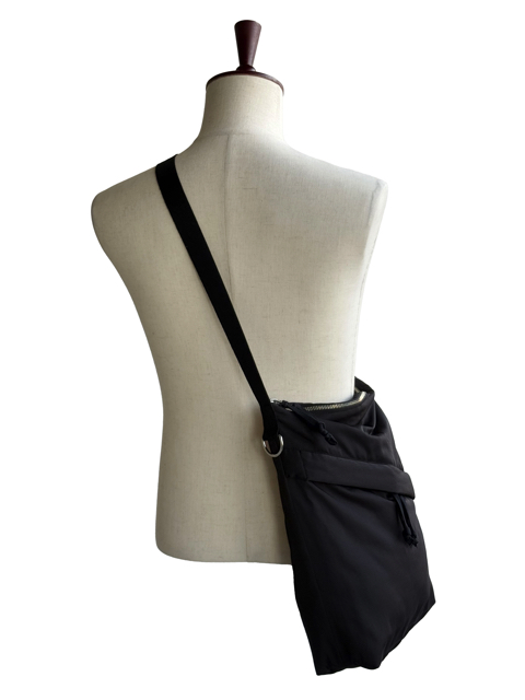 斜めに配置したファスナーポケットを採用しソリッドな印象に仕上げました。