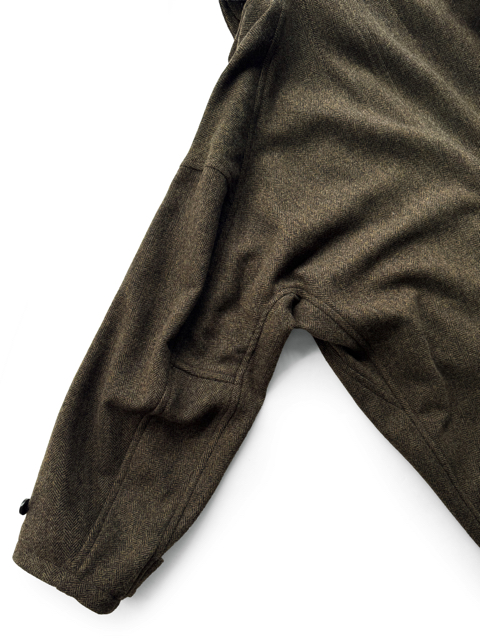 尾州産地にて織り上げた紡毛ツイード素材使用。ヘリンボーン織柄の新色。