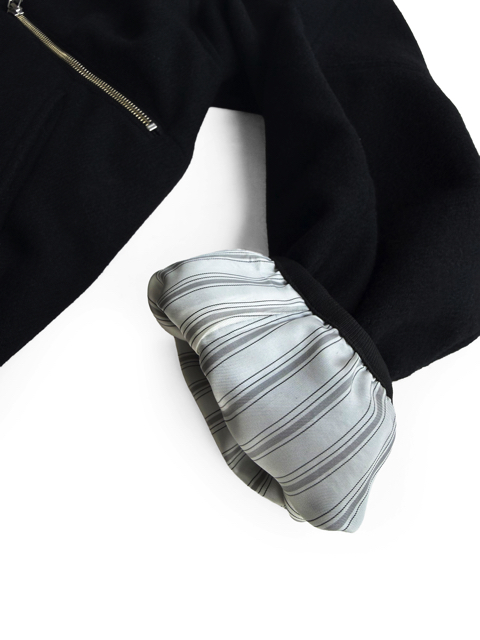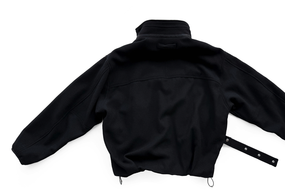 ボリュームのある身幅に着丈は短めのボックスシルエットです。