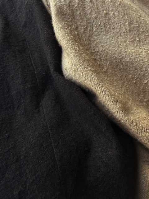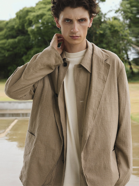 織り交ぜゴツゴツした表面を表現し、ワッシャータンブラーをかけ柔らかく仕上げています。